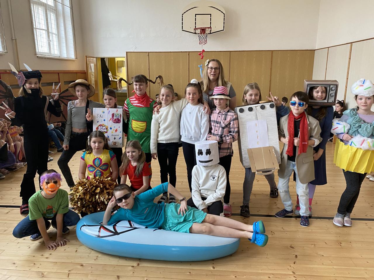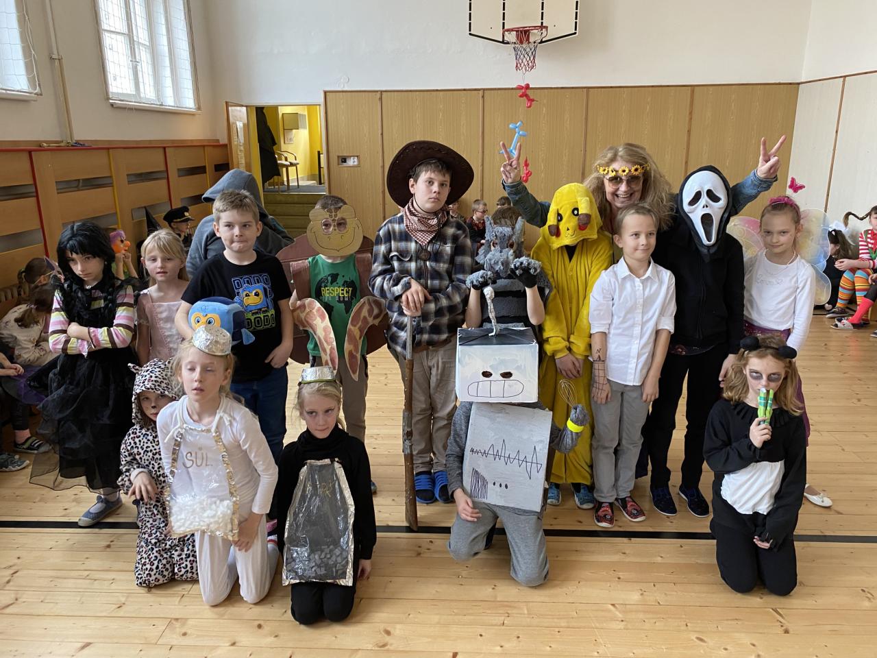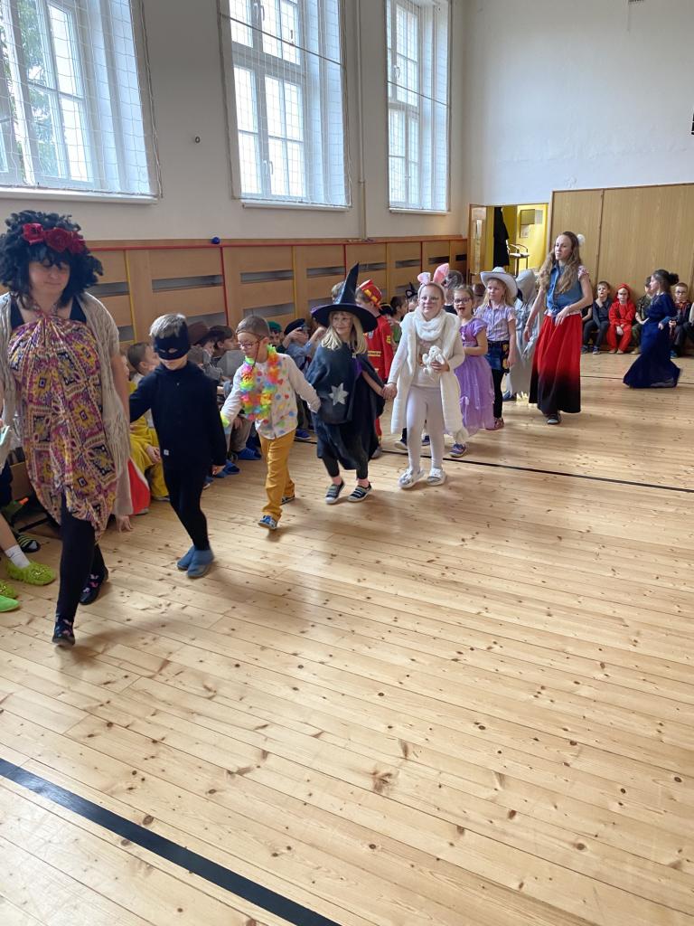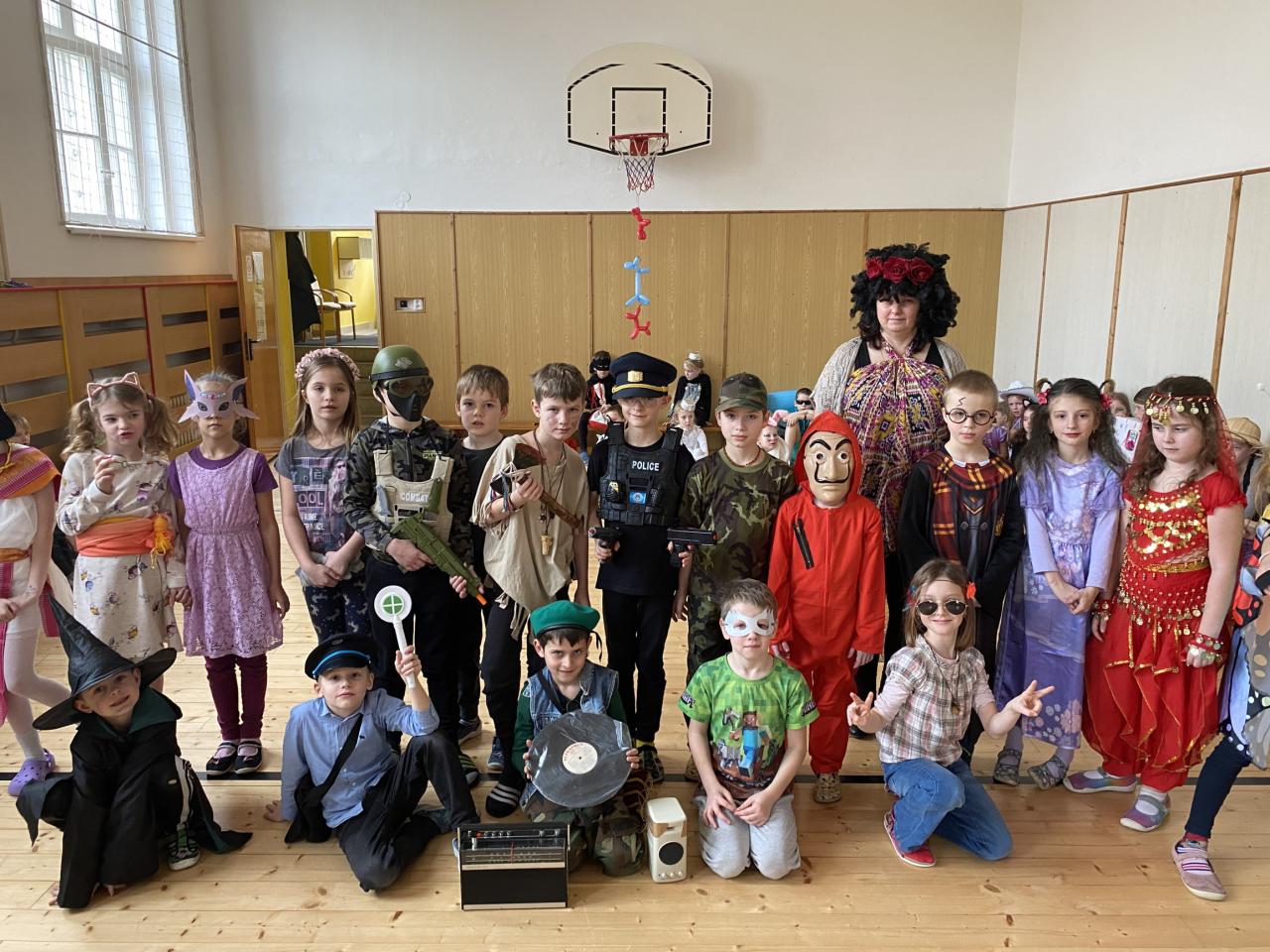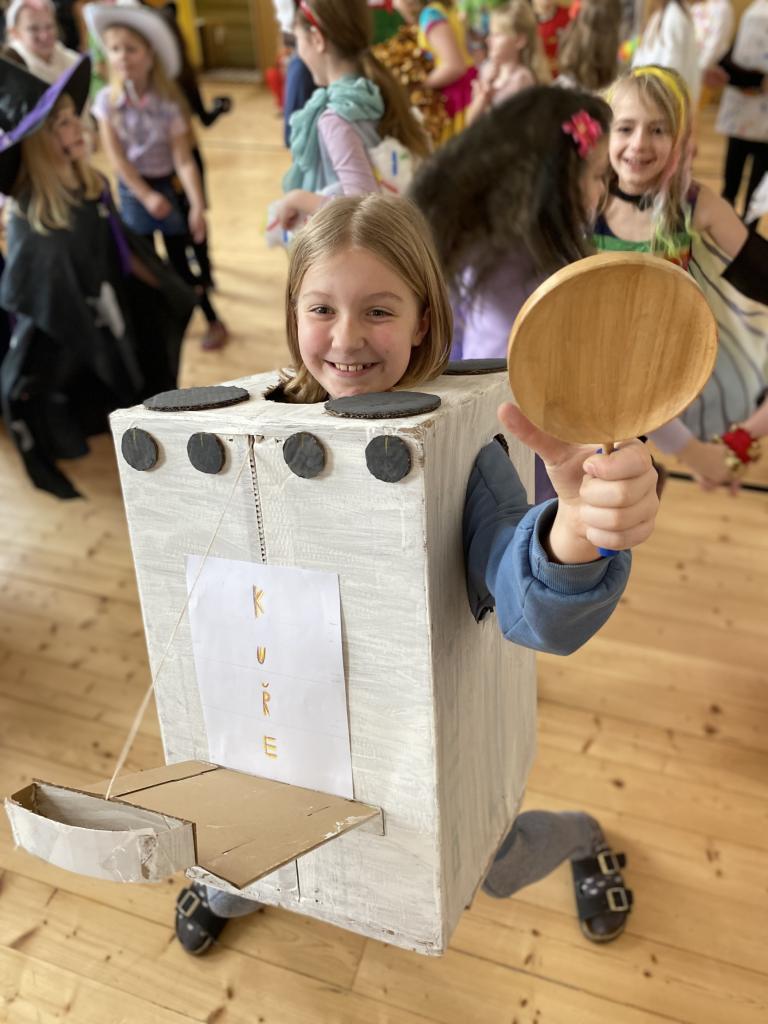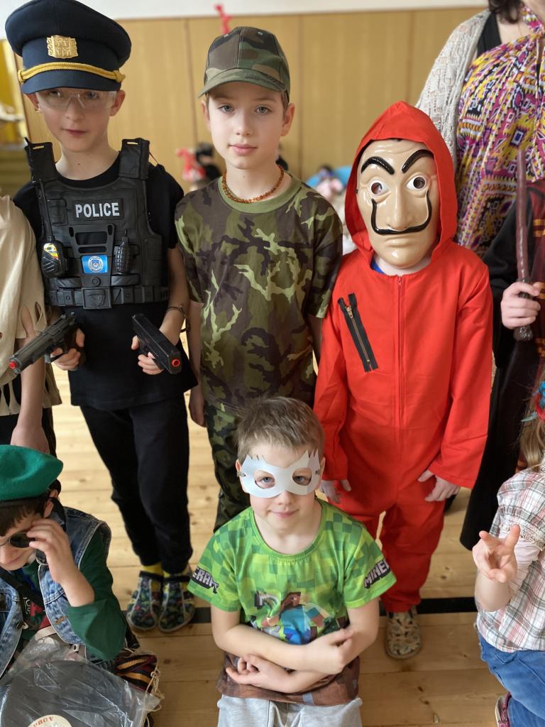 Masopust představuje období hodování a veselí. Takže jsme si uspořádali taneční zábavu, průvod masek a soutěže.