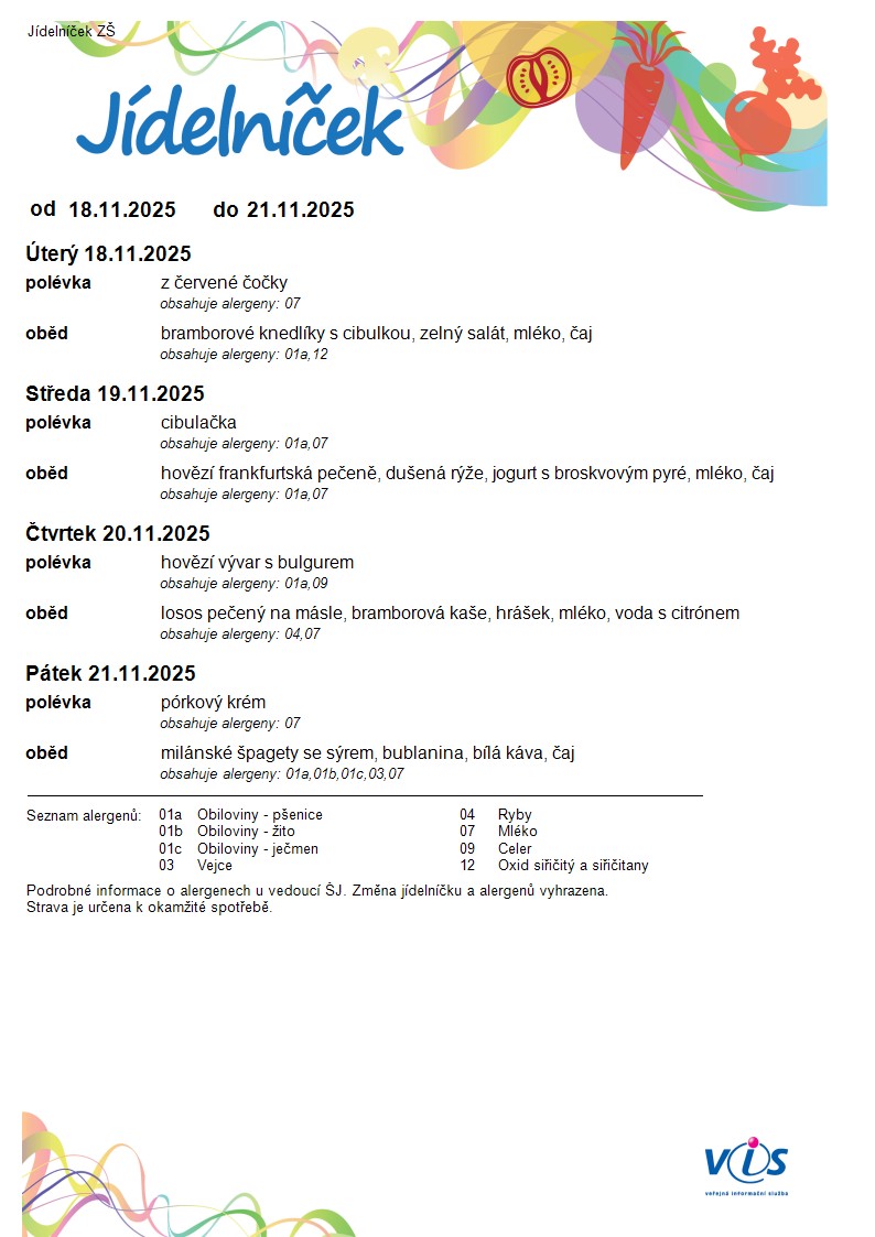 Jídelníček ZŠ od 18.11.2025