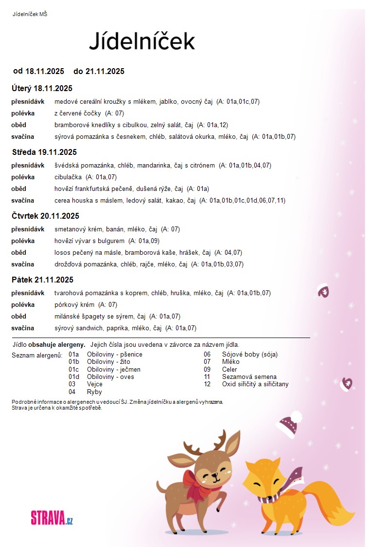 Jídelníček MŠ od 18.11.2025