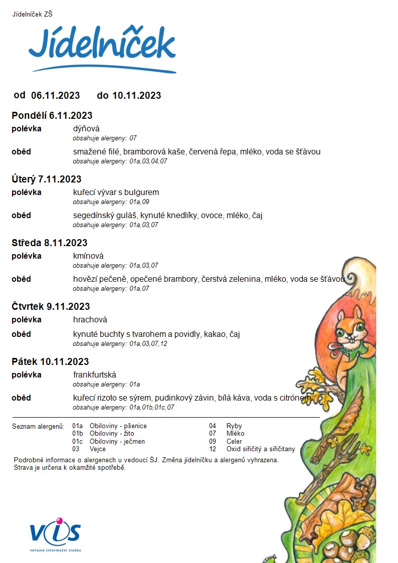 Jídelníček ZŠ od 13. 11. 2023