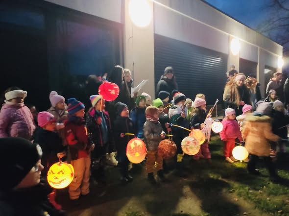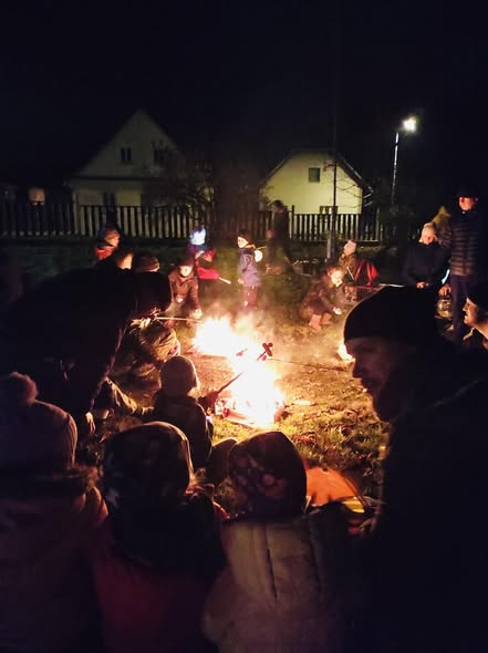Lampionky, svíčky nebo jiná světýlka se rozsvítila při srazu na lampionový průvod. Zazpívaly děti z naší MŠ a poté jsme se vydali na lampionový průvod k hasičce, kde si děti vyzvedly odměnu a upekly buřtíky.