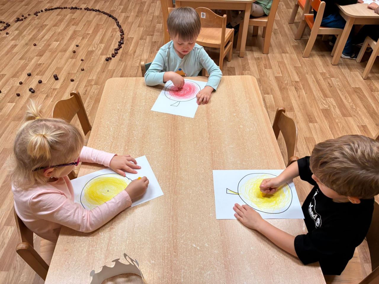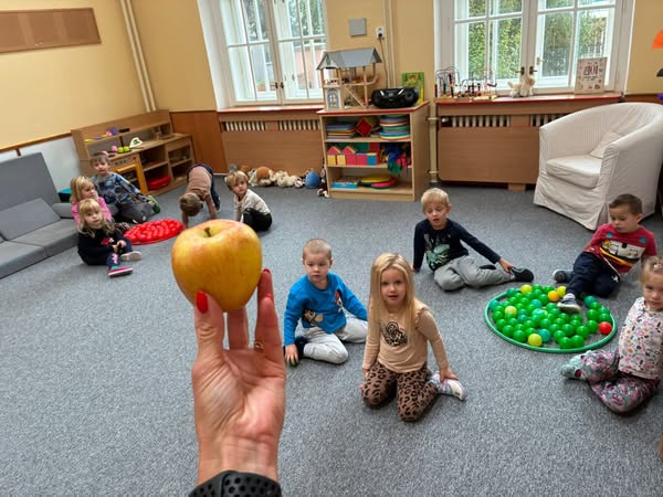 Děti měly téma Jablíčka...malovaly, tvořily, hrály si a určitě i ochutnaly:)