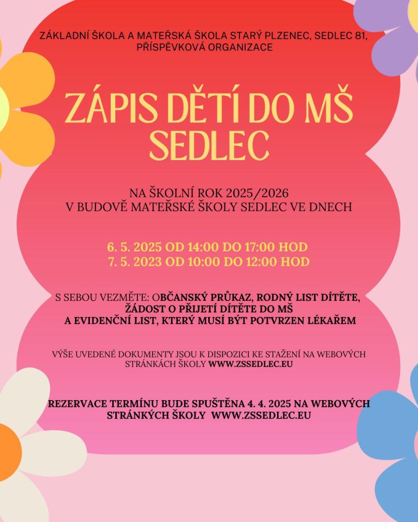 Zápis dětí do MŠ Sedlec