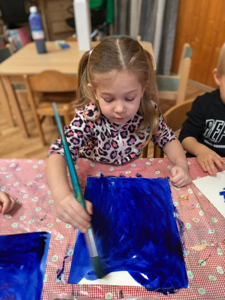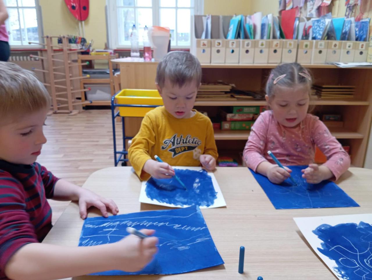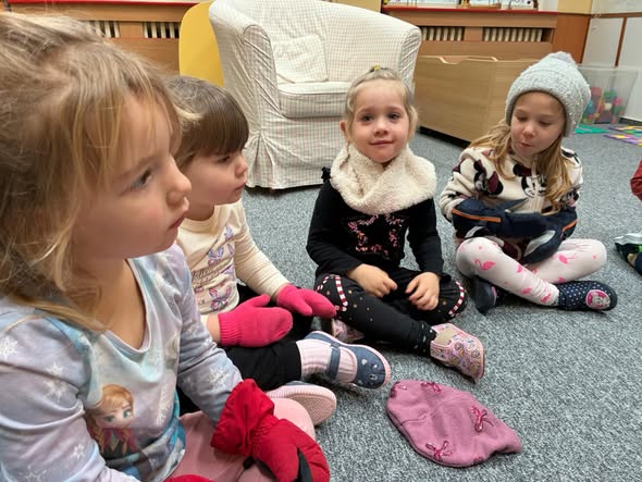 Berušky si povídaly o zimě, pracovaly s vlnou, vodovými barvami, inkoustem a zmizíkem. Na chvilku se staly malíři, zpívaly a zabavily se rytmickými hrami