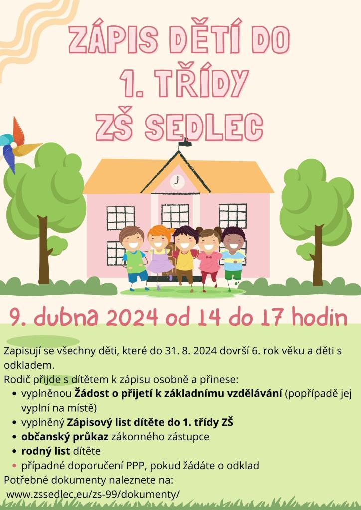 Zápis do 1. třídy - 9. dubna 2024