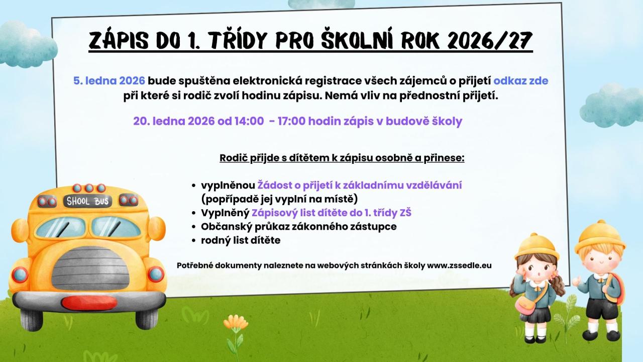 Zápis do 1. třídy pro školní rok 2026/27